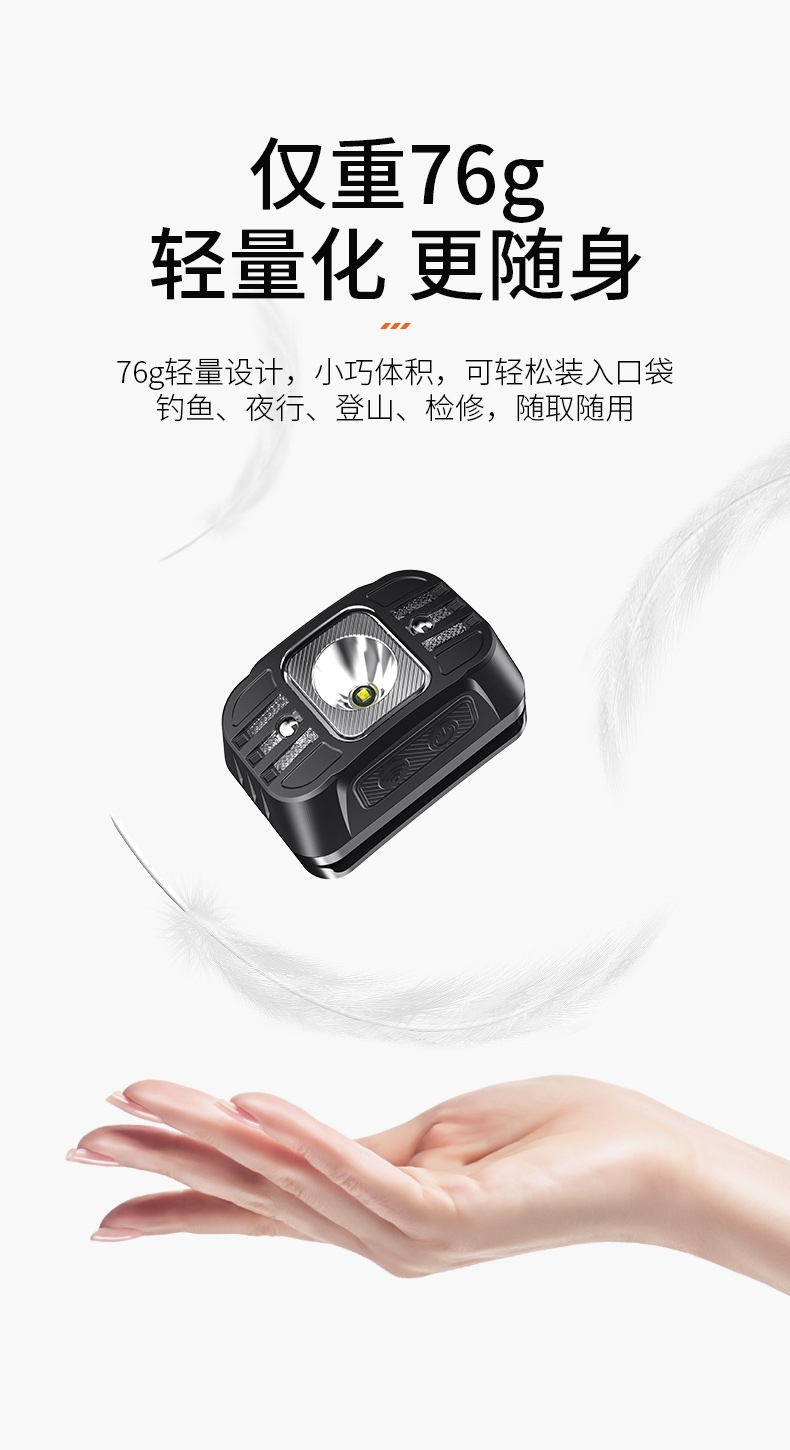 5、此款頭燈款式潮流、設計小巧、攜帶方便、頭帶材質柔軟、可自由拆卸、便于清洗。