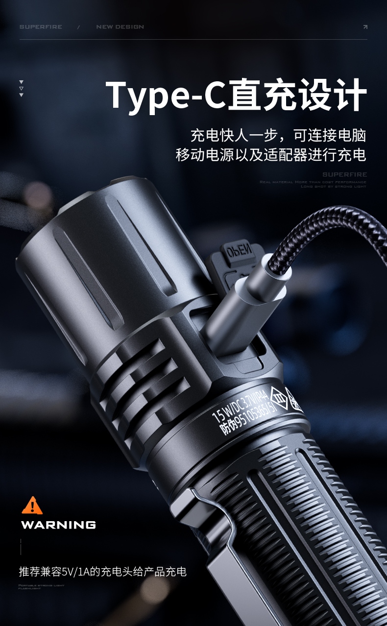 四檔調光 Type-C充電 電量顯示 鋁合金筒身 持久續航 強力防水