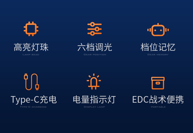 1、六檔調光,可滿足不同使用場景下的照明需求。 2、進口高亮朗明納斯燈珠,照明效果更好。 3、含檔位記憶,任意檔位快捷關機 ,開機恢復關機前檔位。