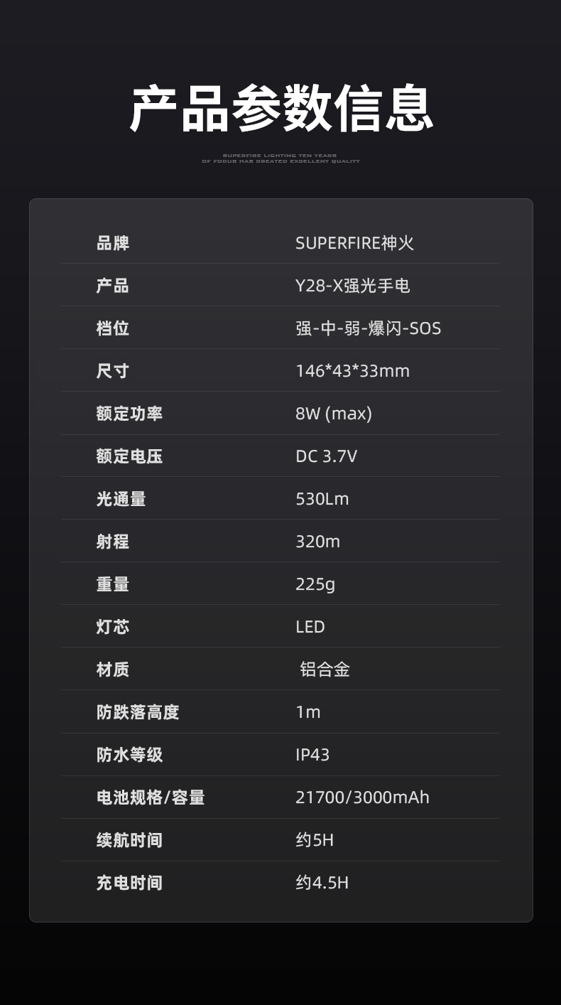6、鋁合金筒身,防水耐摔。