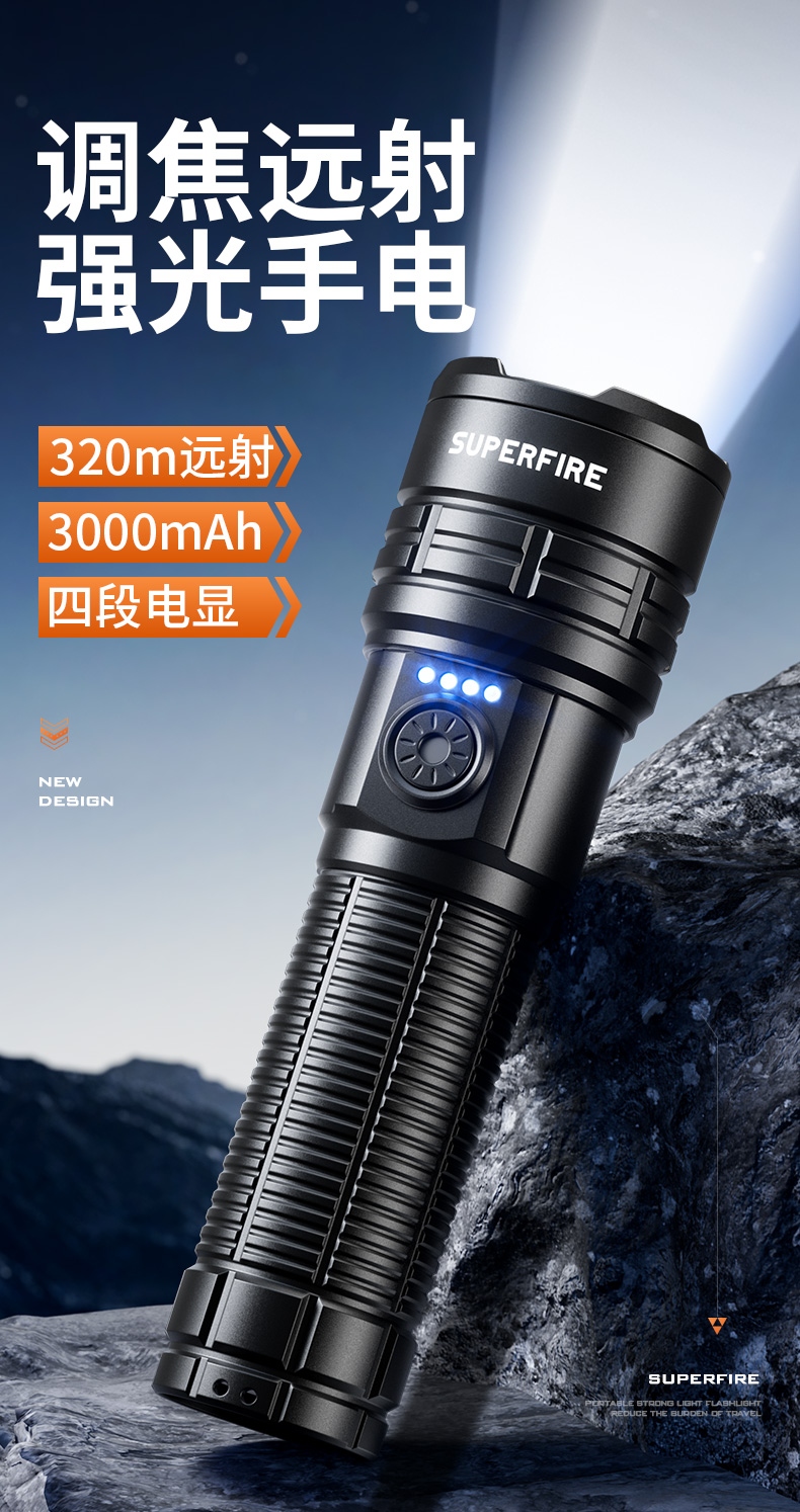 1、多檔調光,可滿足不同使用場景下的照明需求。 2、多種安全程序,可有效保護手電使用安全,延長手電使用壽命。 3、精致外觀,時尚小巧。
