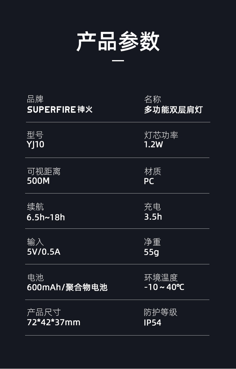 SUPERFIRE神火多功能雙層肩燈YJ10