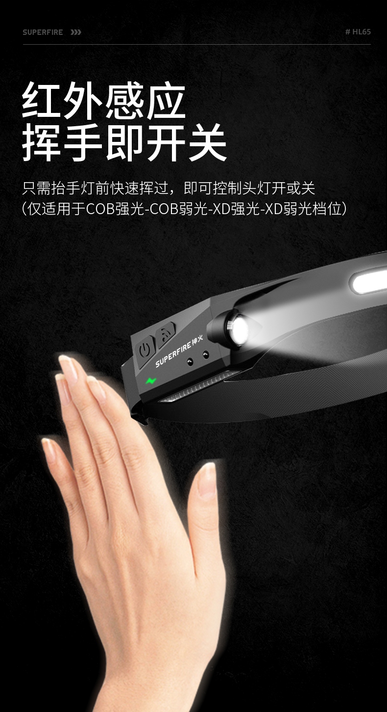 3.感應頭燈:揮手即可感應開啟/關閉,靈敏便捷;
