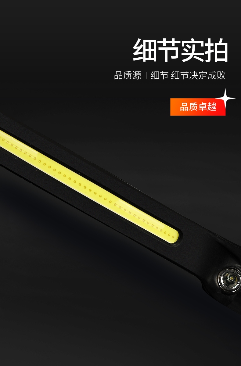 聚光主燈 亮度隨心 輕按后端開關按鈕,主燈強光點亮,續(xù)按依次切換主燈工作光-爆閃光。主燈開啟狀態(tài)下長按5秒,可實現(xiàn)光源色溫轉(zhuǎn)換。主燈關閉狀態(tài)下長按5秒,可開啟燈具最亮照明模式。 爆亮強光 亮如白晝 1500LM大功率高亮光源,點亮頃刻如白晝