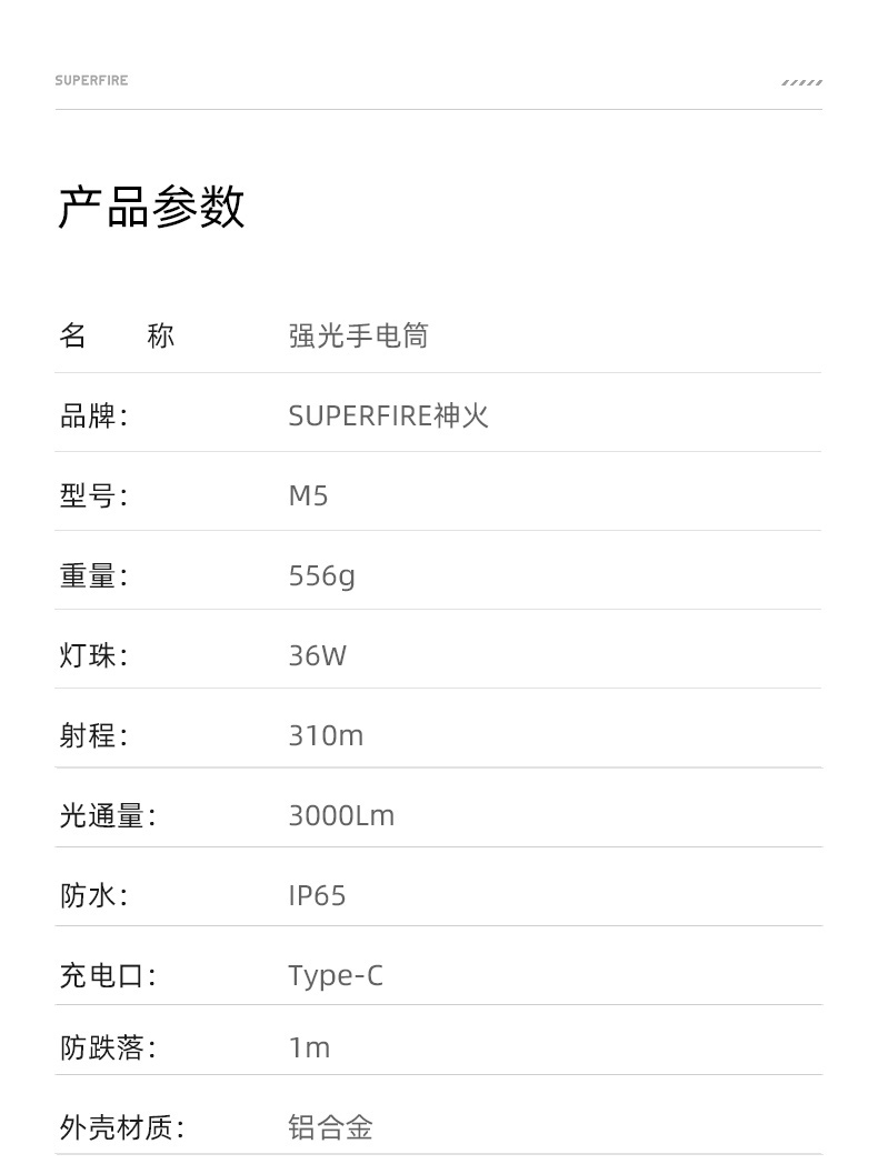 2、多樣化充電,使用方便:設(shè)有Type-C充電口,可使用充電器、電腦等設(shè)備為手電充電。