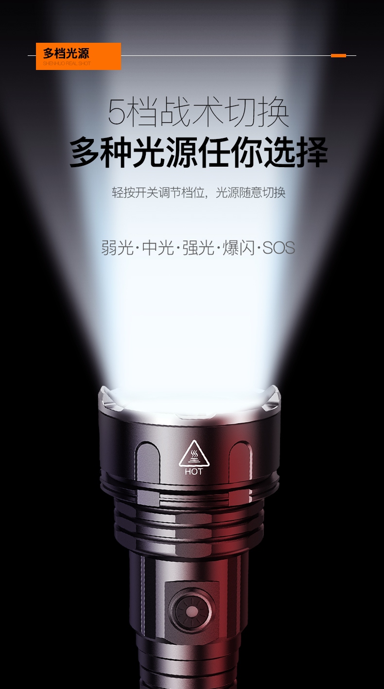1、六檔調光,可滿足不同使用場景下的照明需求。 2、進口高亮朗明納斯燈珠,照明效果更好。 3、含檔位記憶,任意檔位快捷關機 ,開機恢復關機前檔位。