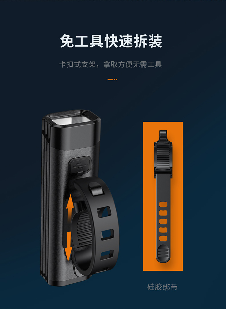 聚光主燈 亮度隨心 輕按后端開關按鈕,主燈強光點亮,續按依次切換主燈工作光-爆閃光。主燈開啟狀態下長按5秒,可實現光源色溫轉換。主燈關閉狀態下長按5秒,可開啟燈具最亮照明模式。 爆亮強光 亮如白晝 1500LM大功率高亮光源,點亮頃刻如白晝