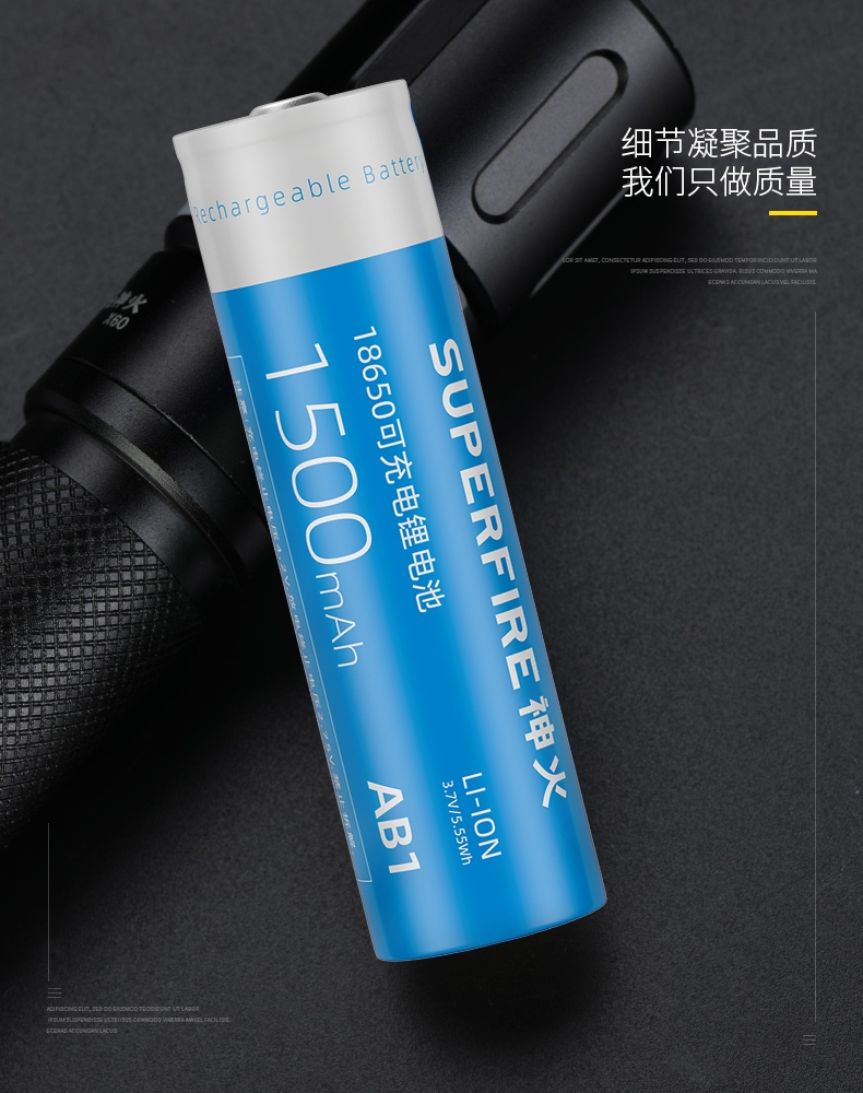 3W/5W專用電池;規(guī)格:18650鋰充電電池,1500mAh