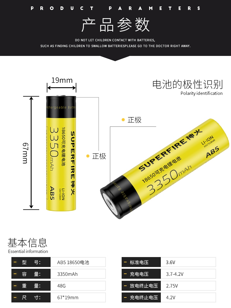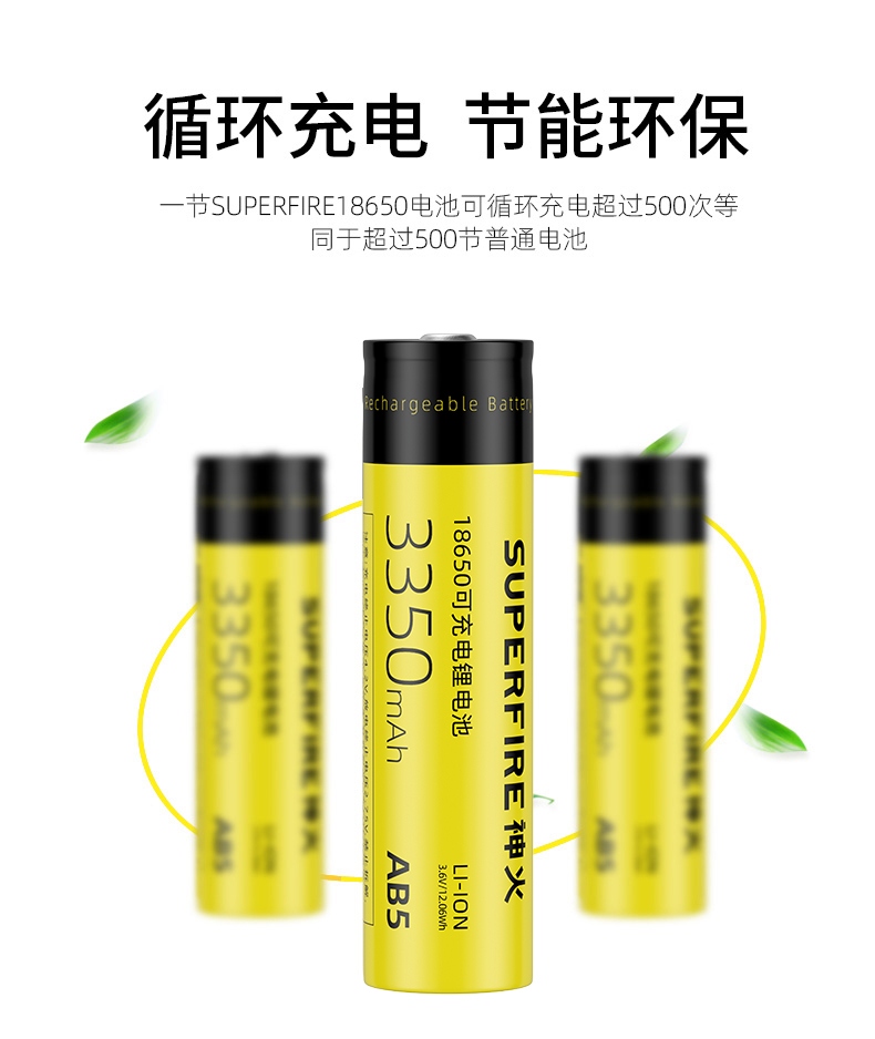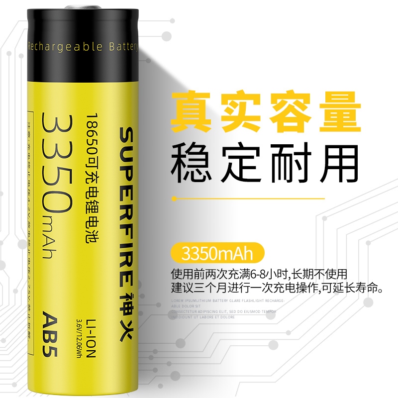 AB5電池;規格:18650鋰充電電池,3350mAh