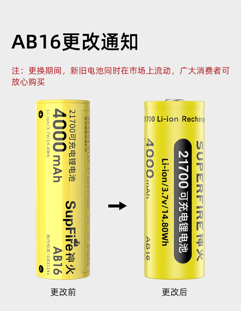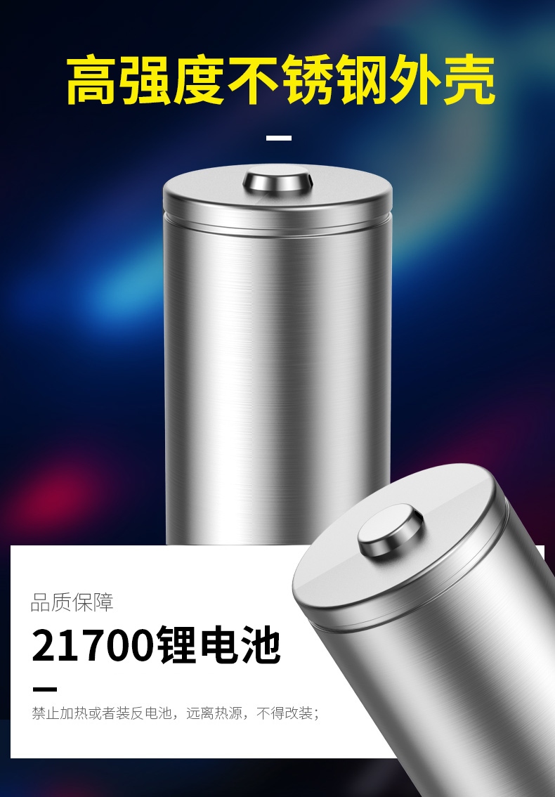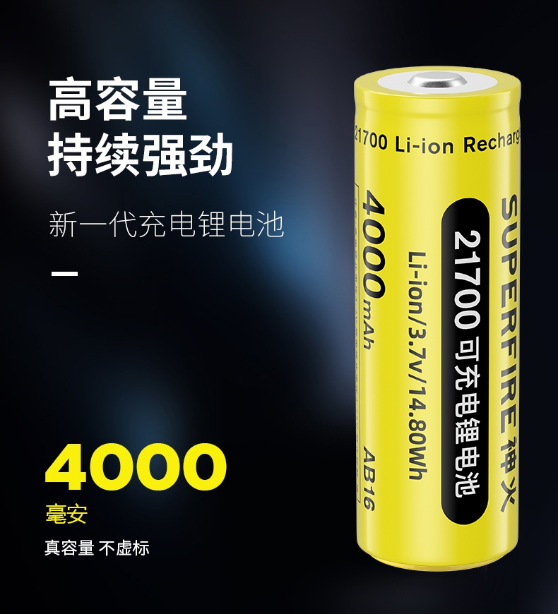 大容量電池,可用長款AC16充電;規格:21700可充電鋰電池,4000mAh