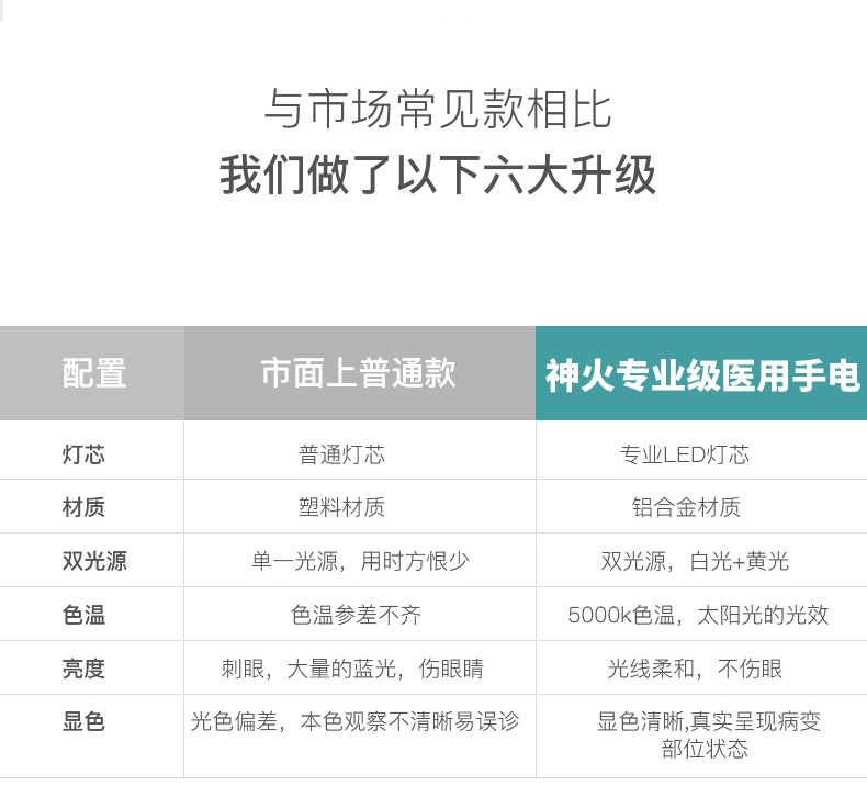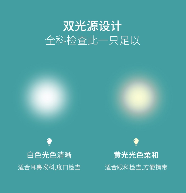 有白、黃雙光源,光線柔和不刺眼,顯色清晰,眼科、耳、鼻、牙科、口腔專用,鋁合金材質(zhì)更耐用,醫(yī)生和寶媽必備。設(shè)有防反接、防過放兩重安全程序,使用更安全。