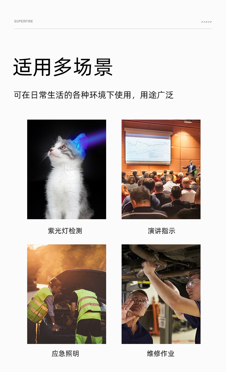 1、功能多樣,含前燈、側燈、紫光燈、激光燈四種燈光。