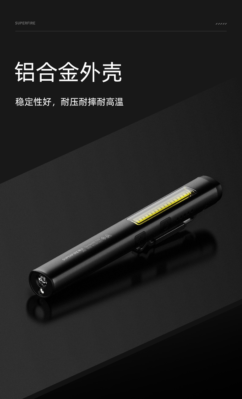 5、多樣化充電,使用方便:設有Type-C充電接口,可使用充電器、充電寶、電腦等設備為手電充電。