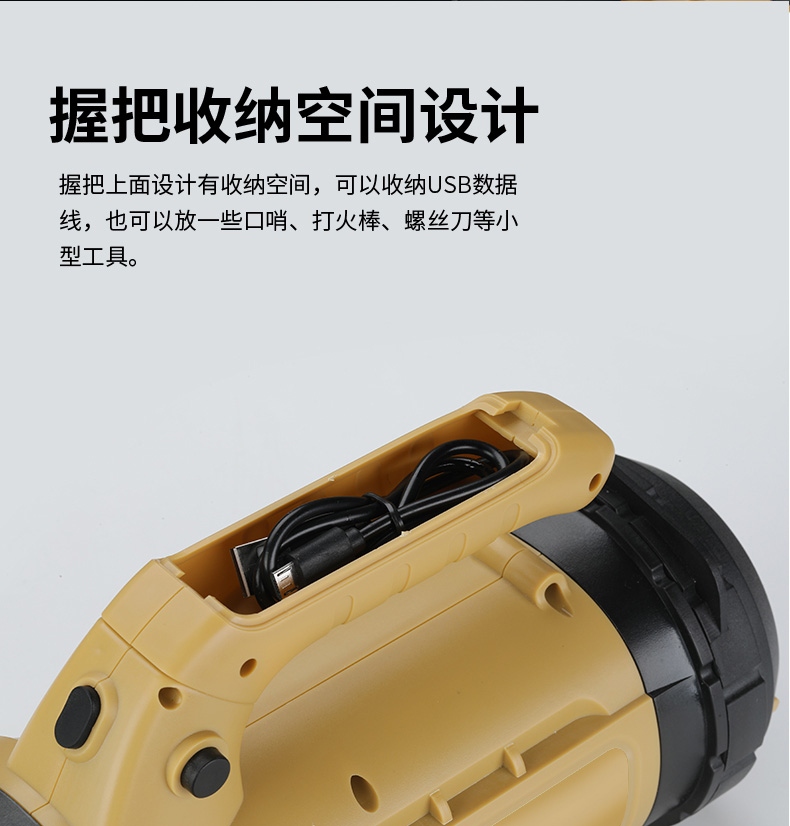 1、多檔調光,可滿足不同使用場景下的照明需求; 2、含提手,握感更舒適。攜帶更簡單; 3、新型高亮遠射燈珠,60W大功率,亮度高,照明效果好。