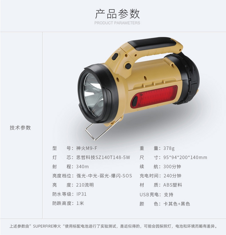 多功能手提探照燈,大光杯照射面積廣,戶外巡邏,搶險救災必備