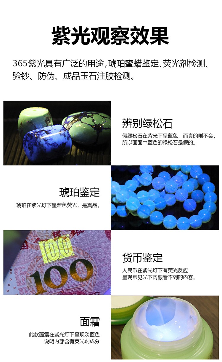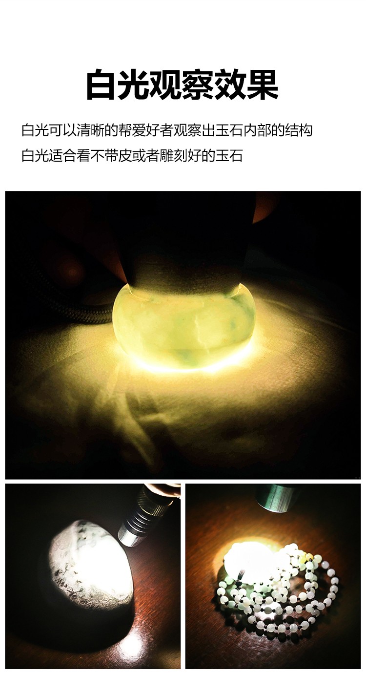 小巧不銹鋼照玉手電,三種光源(白,黃,紫),日常照明使用,照玉,檢測熒光劑,查防偽