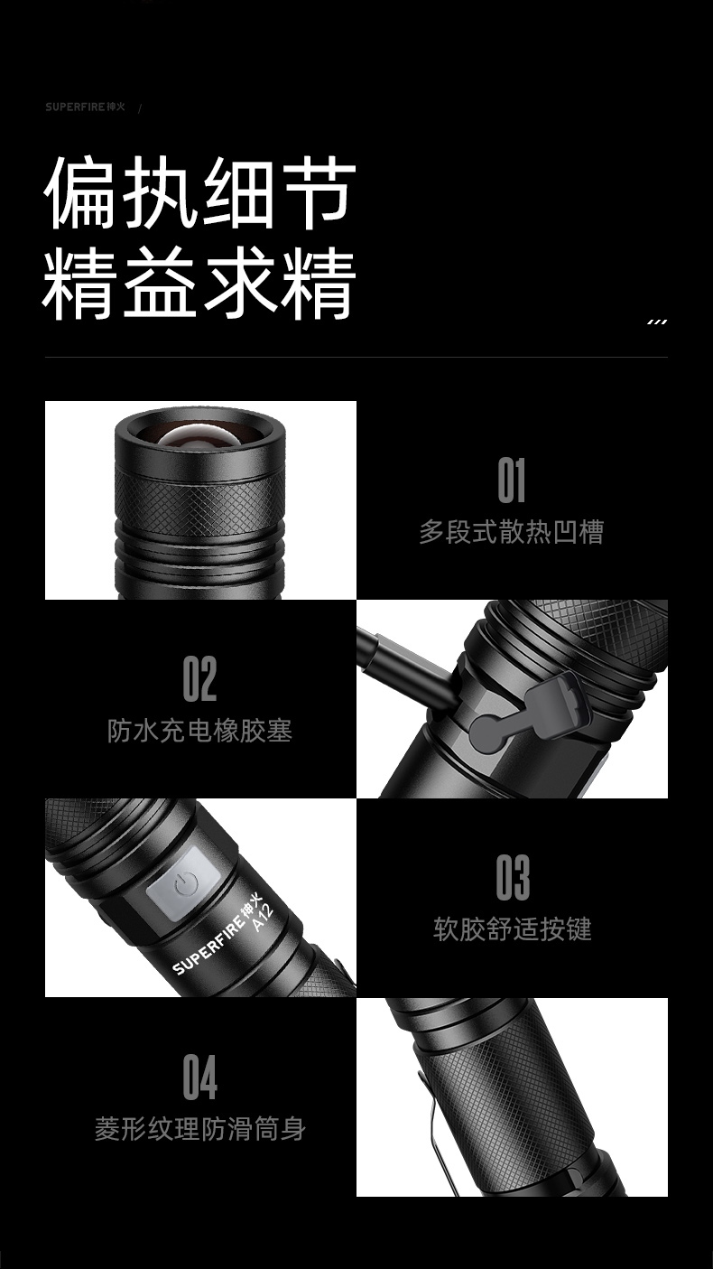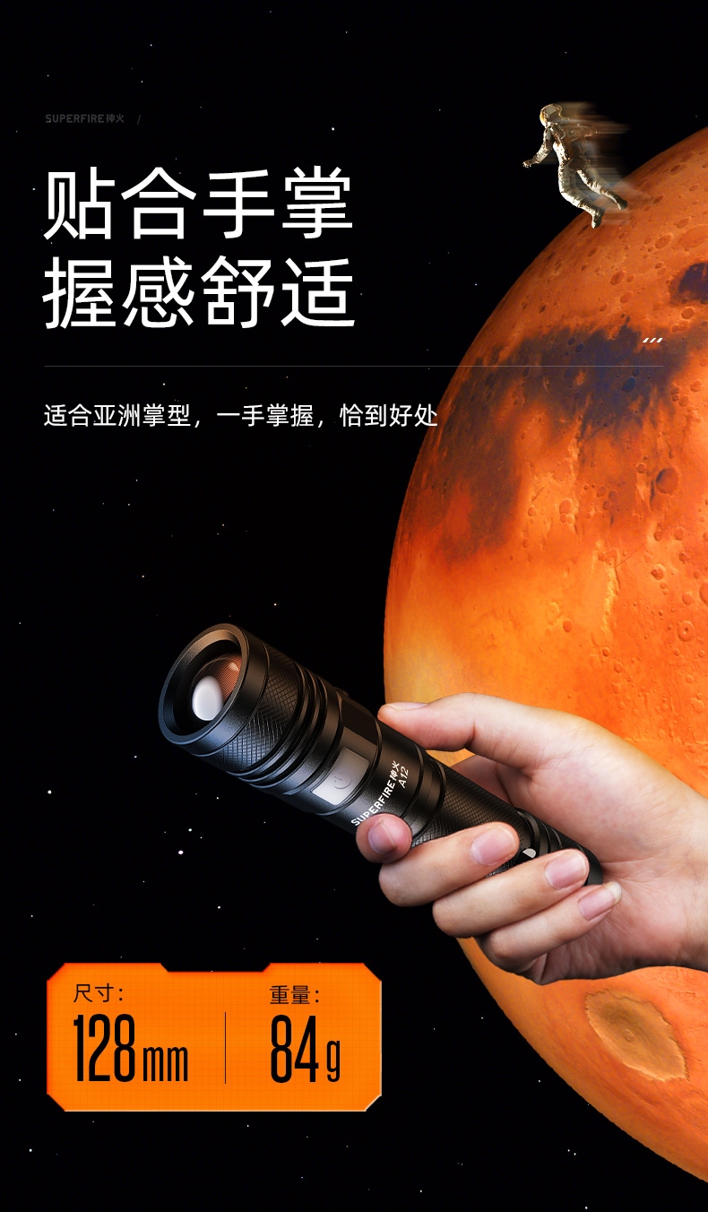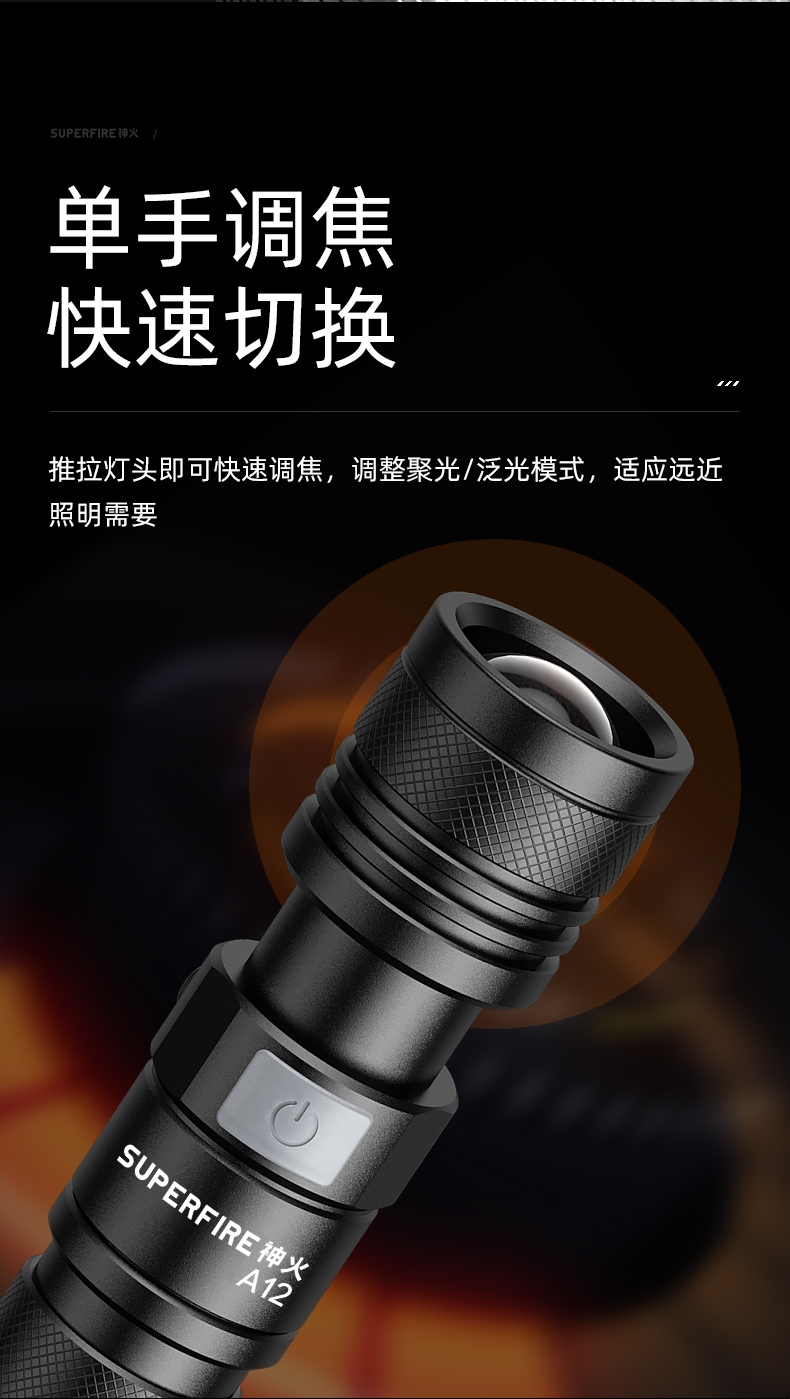 4、調焦手電,單手操控,簡單方便。
