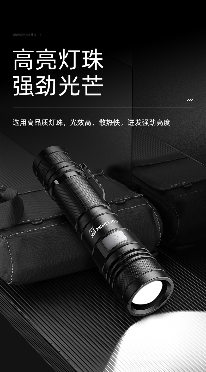 1、千米遠射,射程更遠,光斑更聚焦。 2、進口燈珠,亮度高,照明效果更好。 3、前后雙按鍵,光源一鍵點亮,高亮瞬間開啟。