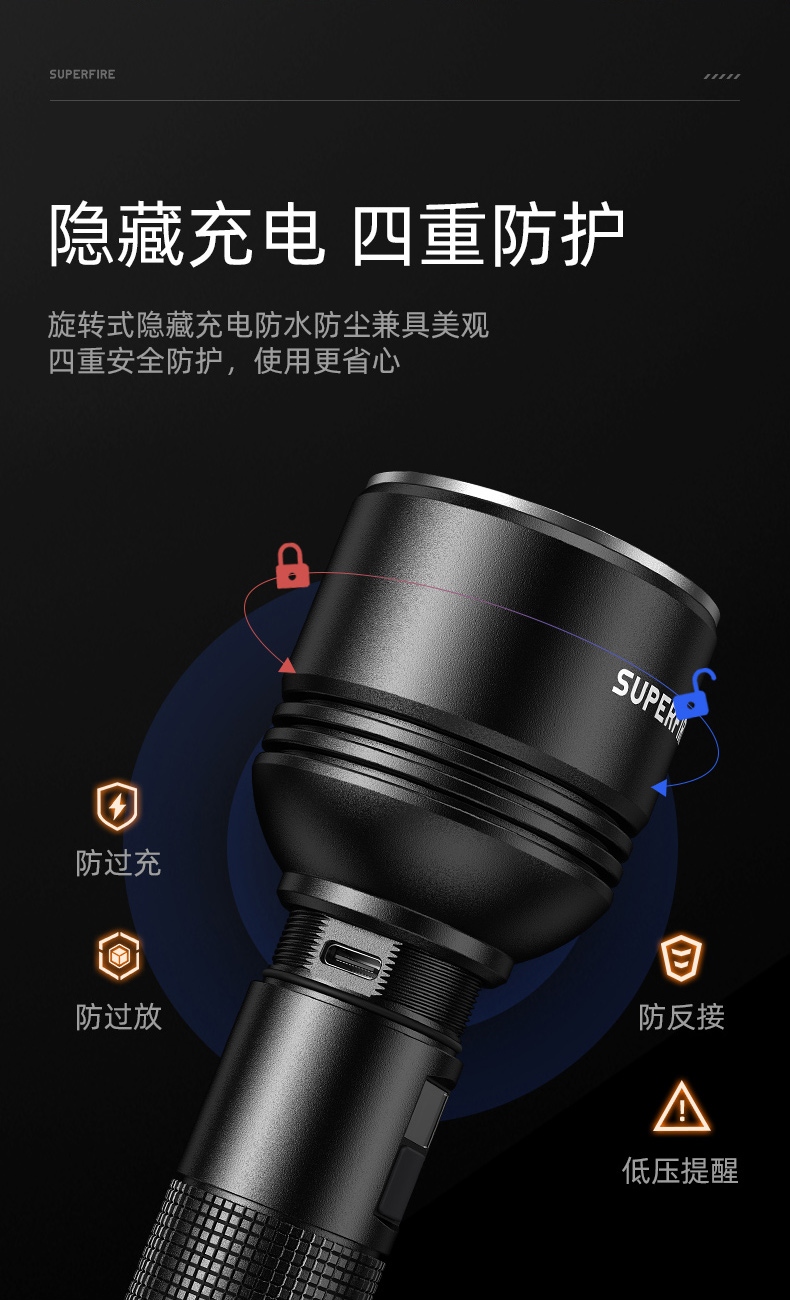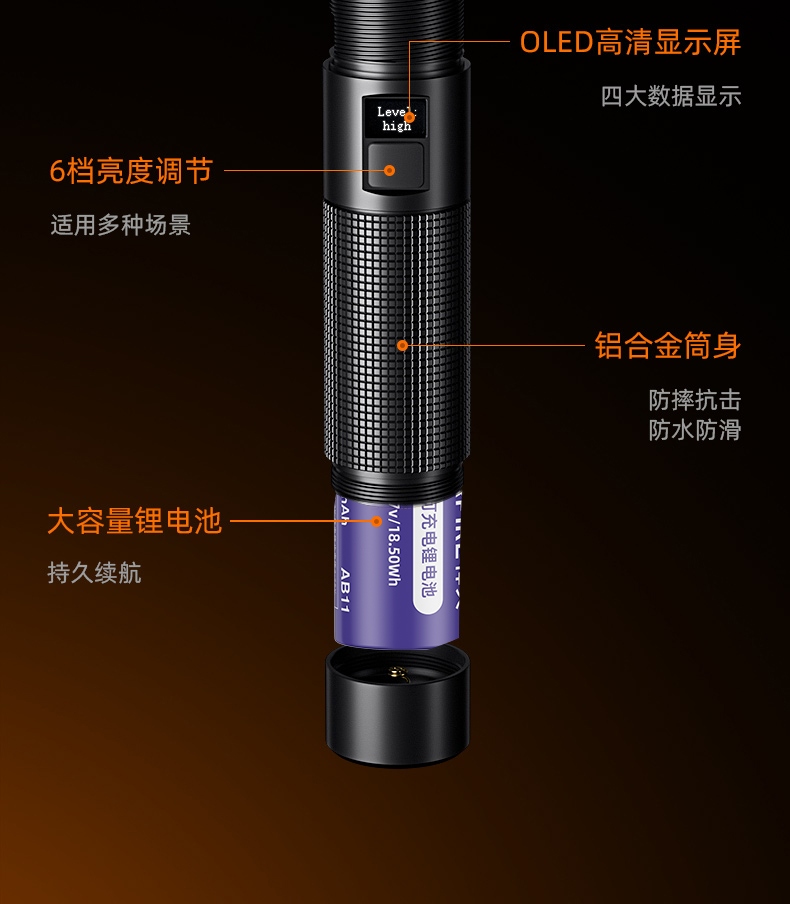 四檔調(diào)光 Type-C充電 電量顯示 鋁合金筒身 持久續(xù)航 強(qiáng)力防水