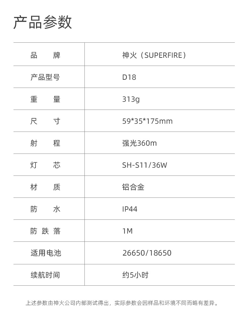 1、千米遠(yuǎn)射,射程更遠(yuǎn),光斑更聚焦。 2、進(jìn)口燈珠,亮度高,照明效果更好。 3、前后雙按鍵,光源一鍵點(diǎn)亮,高亮瞬間開啟。