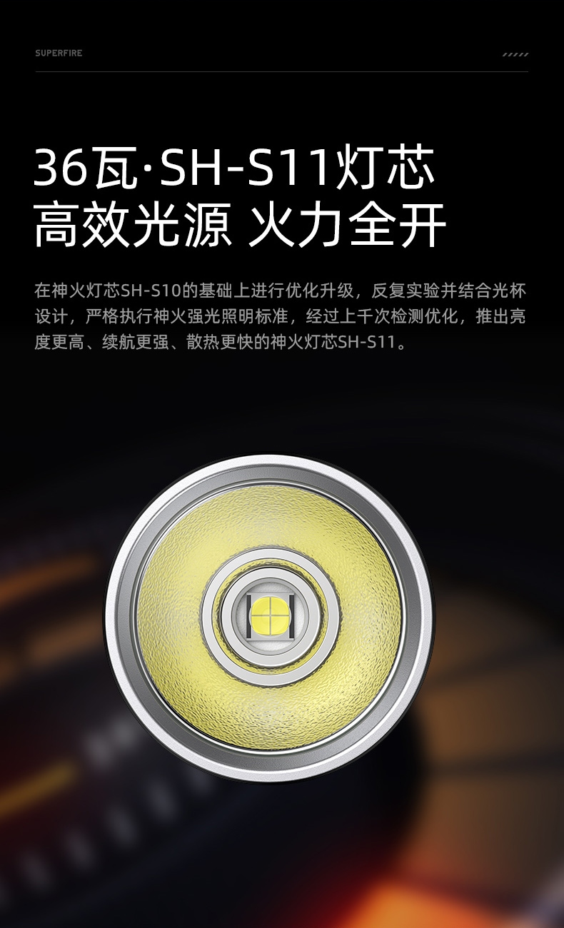 1、大尺寸鋁合金光杯,光斑更圓潤(rùn)。 2、新型高亮遠(yuǎn)射燈珠,40W大功率,亮度高,照明效果好。