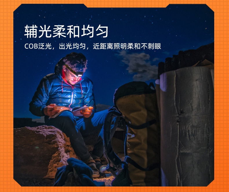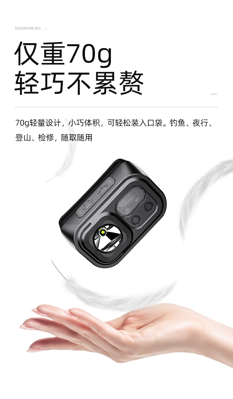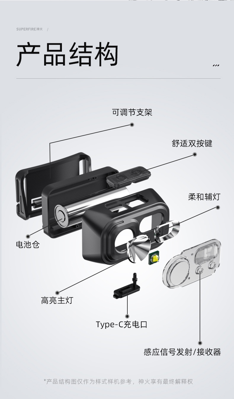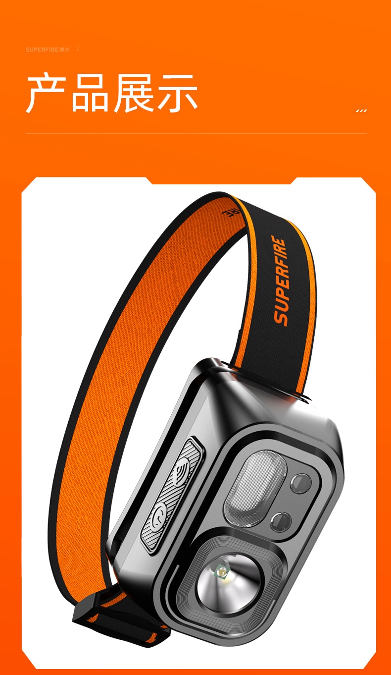 強光亮度,運動頭燈,前后均衡設計,輕便不壓頭,可調節式頭燈帶,佩戴方便舒適,伸縮調焦,光照范圍大,照射距離遠,頭燈角度調節,超90度角度隨意調節,適宜各種環境使用