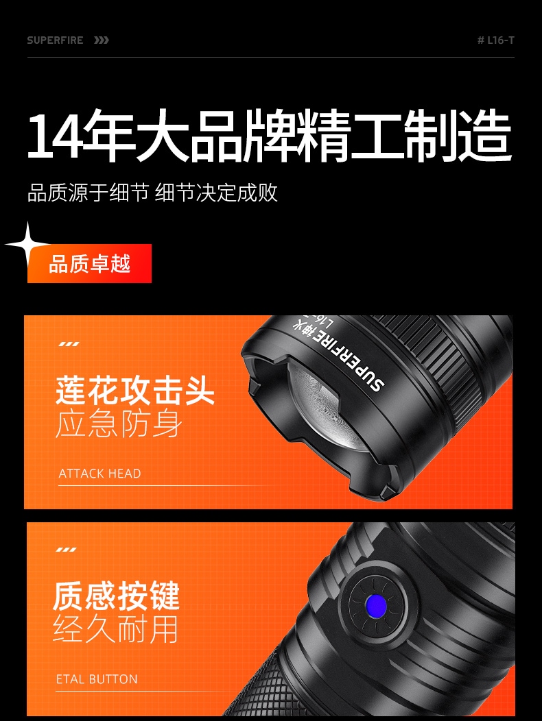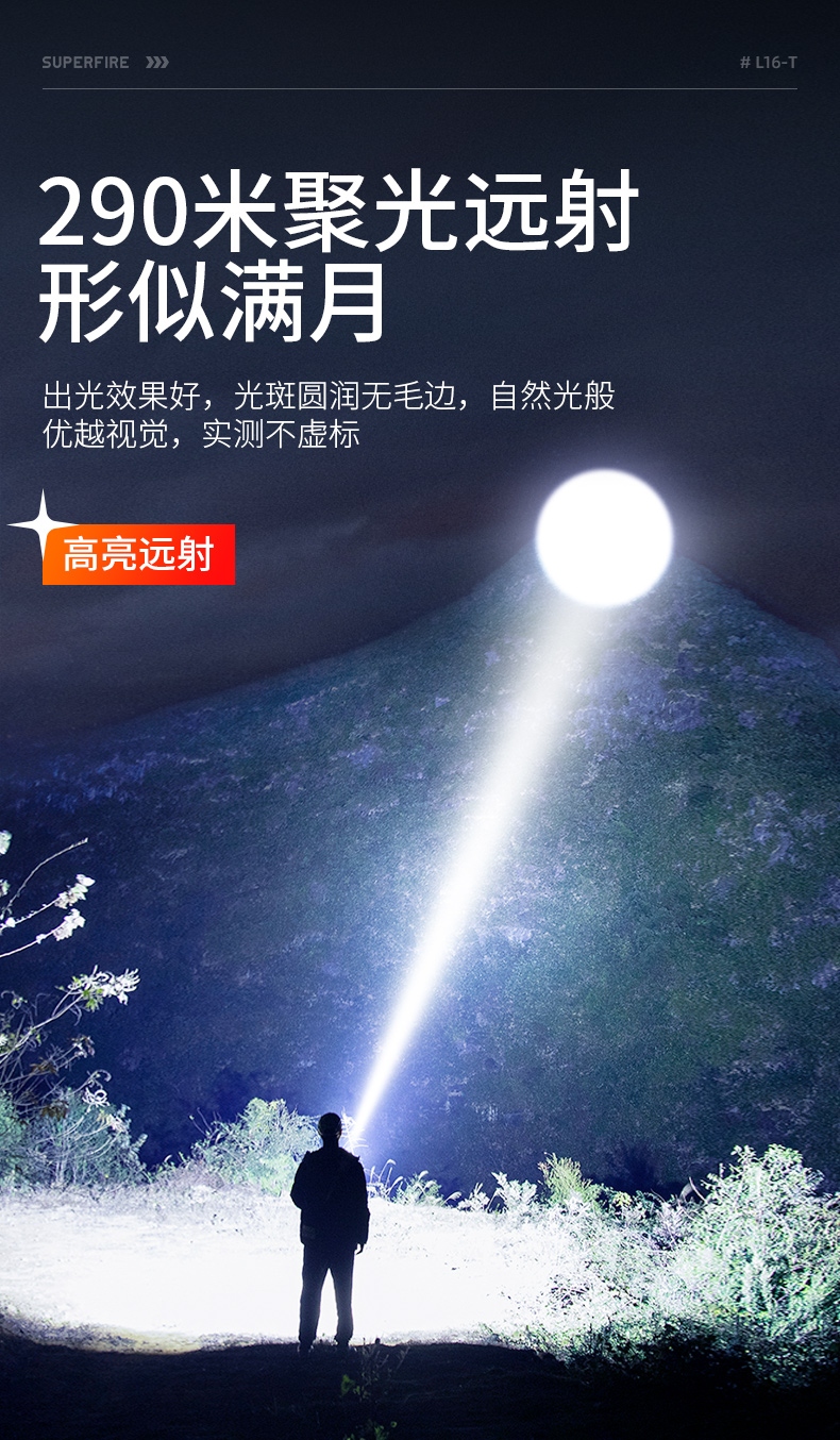 1、千米遠射,射程更遠,光斑更聚焦。 2、進口燈珠,亮度高,照明效果更好。 3、前后雙按鍵,光源一鍵點亮,高亮瞬間開啟。