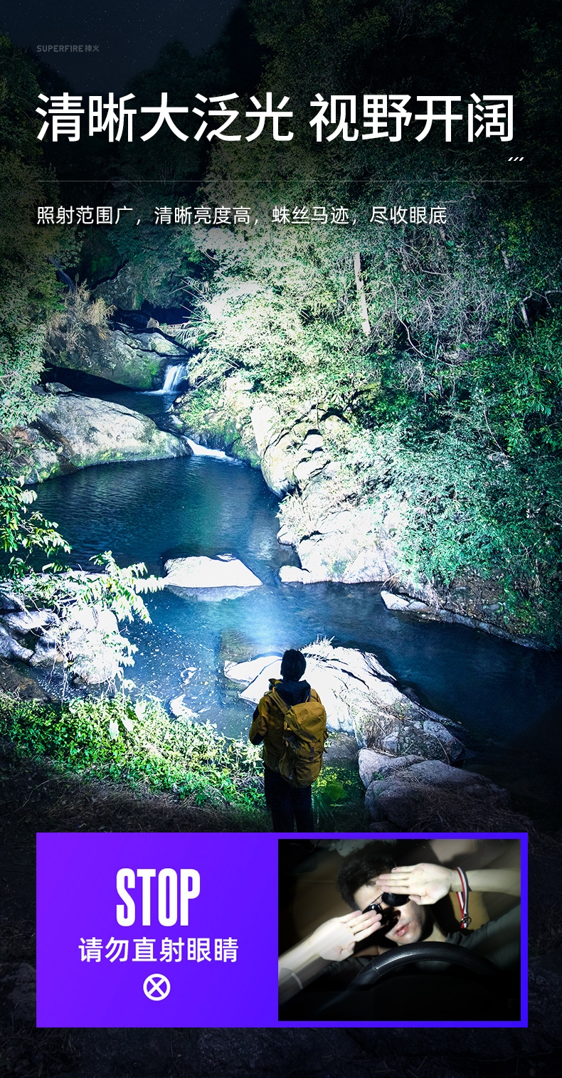 1、千米遠(yuǎn)射,射程更遠(yuǎn),光斑更聚焦。 2、進(jìn)口燈珠,亮度高,照明效果更好。 3、前后雙按鍵,光源一鍵點(diǎn)亮,高亮瞬間開啟。