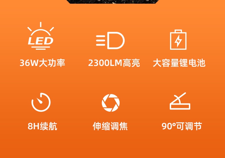 1、鋁合金+ABS材質(zhì),36W大功率,亮度高達(dá)2300流明,四個(gè)檔位滿足不同的使用需求; 2、伸縮調(diào)焦:光照范圍大,照射距離遠(yuǎn) ,可自由調(diào)節(jié)光圈的大小/聚光/泛光; 3、頭燈角度調(diào)節(jié):超90°角度隨意調(diào)節(jié),適宜各環(huán)境使用