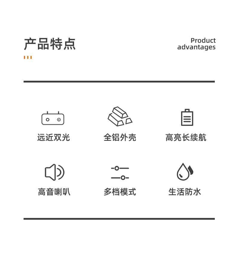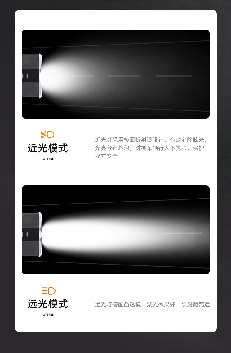 1、大尺寸鋁合金光杯,光斑更圓潤(rùn)。 2、新型高亮遠(yuǎn)射燈珠,40W大功率,亮度高,照明效果好。