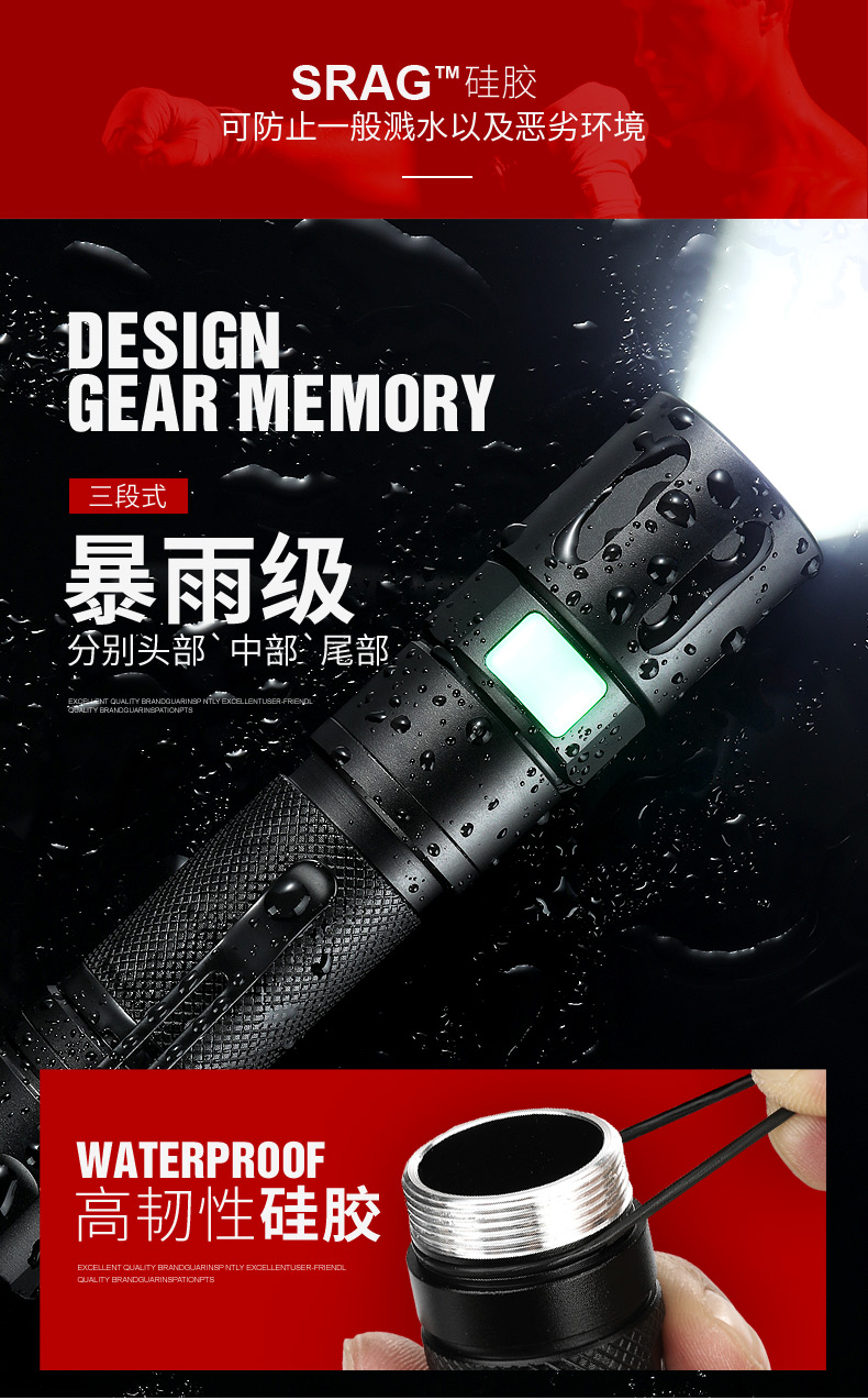 1、推拉燈頭可實現伸縮調焦。 2、多樣化充電,使用方便:設有Type-C充電接口,可使用充電器、充電寶、電腦等設備為手電充電。充電時紅色指示燈亮閃,充滿時藍色指示燈亮。