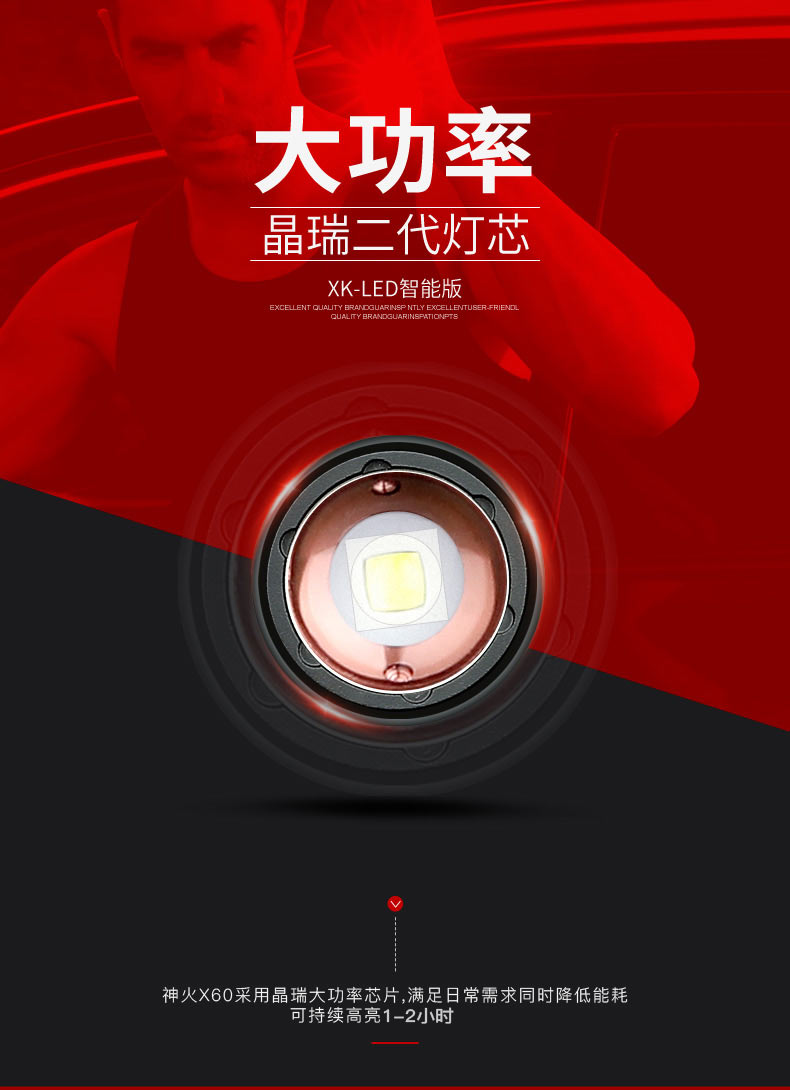 1、多檔調光,可滿足不同使用場景下的照明需求; 2、含提手,握感更舒適。攜帶更簡單; 3、新型高亮遠射燈珠,60W大功率,亮度高,照明效果好。