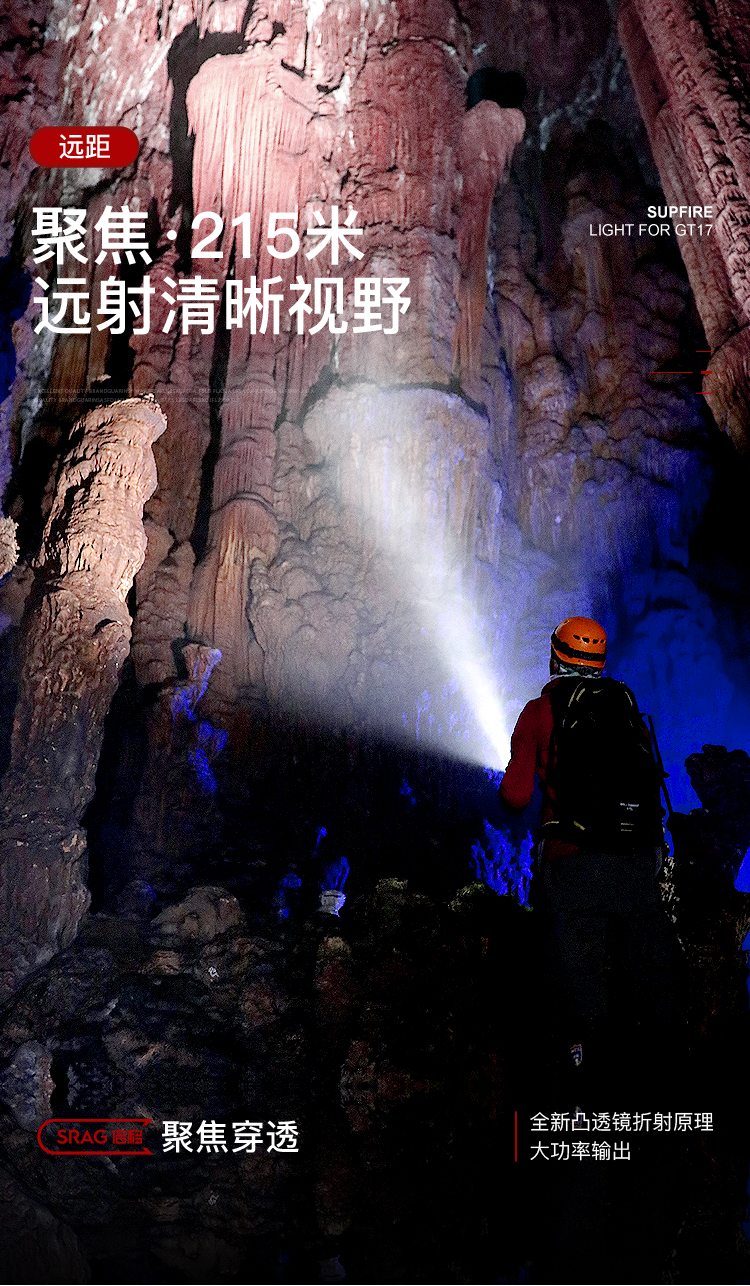 聚光主燈 亮度隨心 輕按后端開關按鈕,主燈強光點亮,續按依次切換主燈工作光-爆閃光。主燈開啟狀態下長按5秒,可實現光源色溫轉換。主燈關閉狀態下長按5秒,可開啟燈具最亮照明模式。 爆亮強光 亮如白晝 1500LM大功率高亮光源,點亮頃刻如白晝
