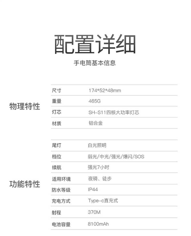 四檔調(diào)光 Type-C充電 電量顯示 鋁合金筒身 持久續(xù)航 強(qiáng)力防水