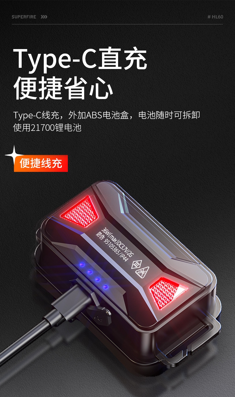 1、四檔一體:弱中強(qiáng)、爆閃自由切換 2、頭燈角度調(diào)節(jié):超90°角度隨意調(diào)節(jié),適宜各環(huán)境使用 3、Type-c充電+可拆卸電池:使用便捷,續(xù)航持久 4、電量顯示:實(shí)時(shí)電顯,輕松掌握電量,一目了然 5、電池倉特設(shè)安全指示燈。