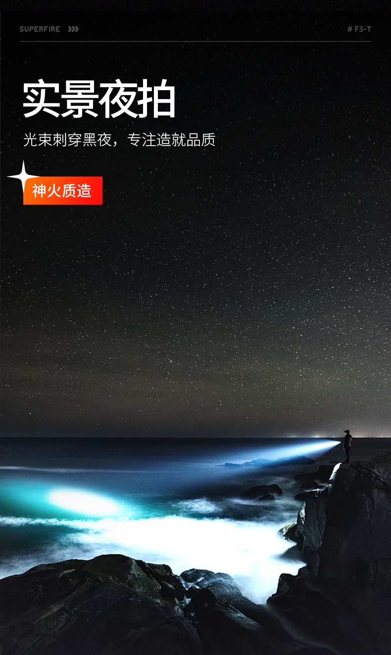 3、高聚光光柱,刺破黑暗,遠射效果更明顯。
