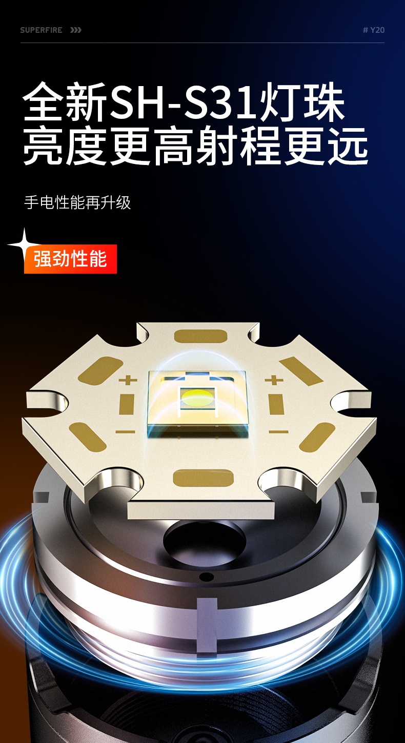 2、20W全新高亮遠射燈珠,射程遠,照明效果更好。