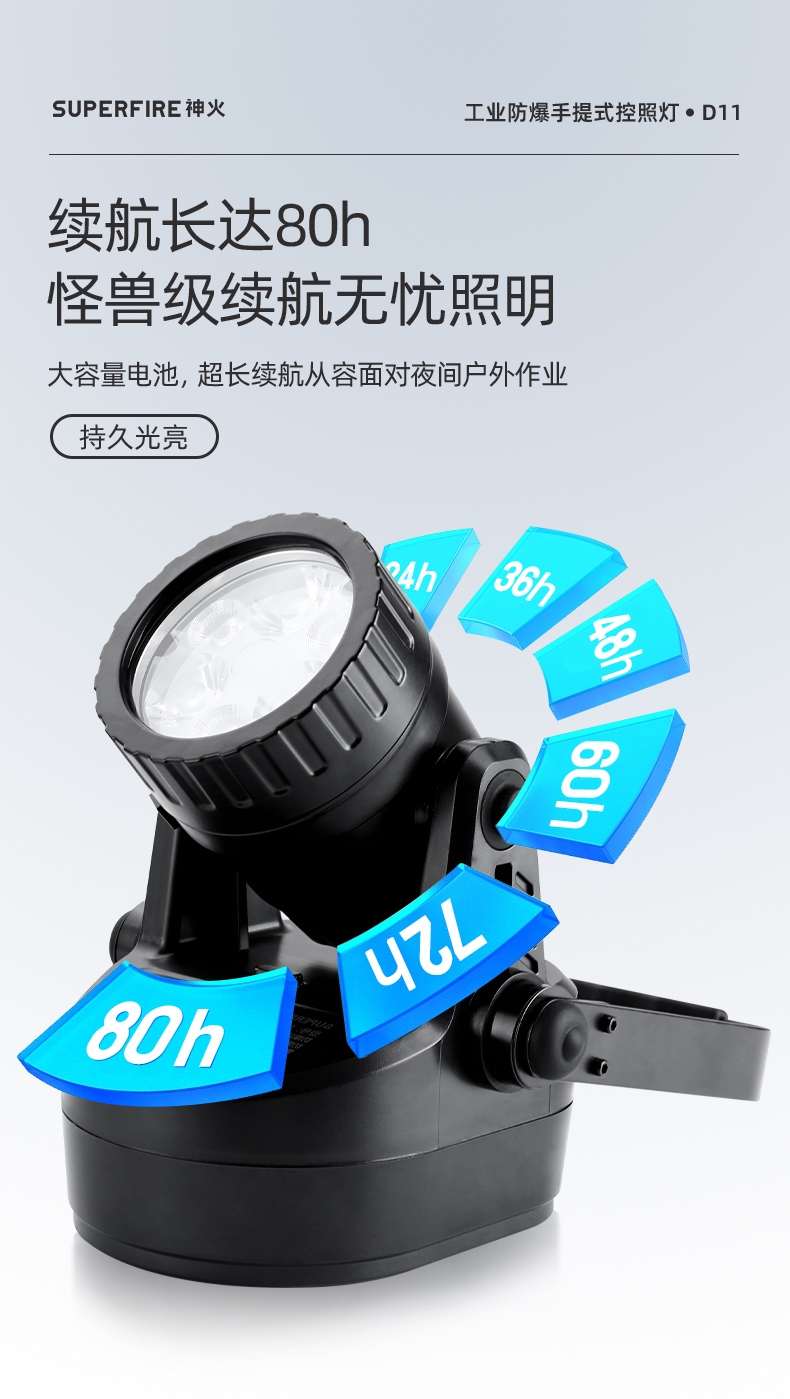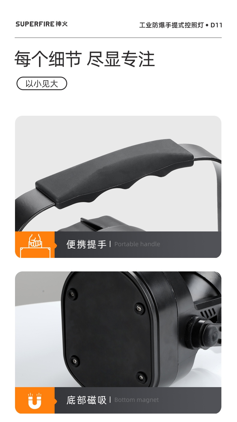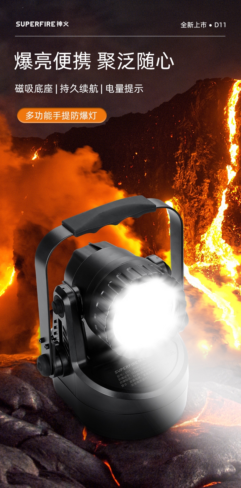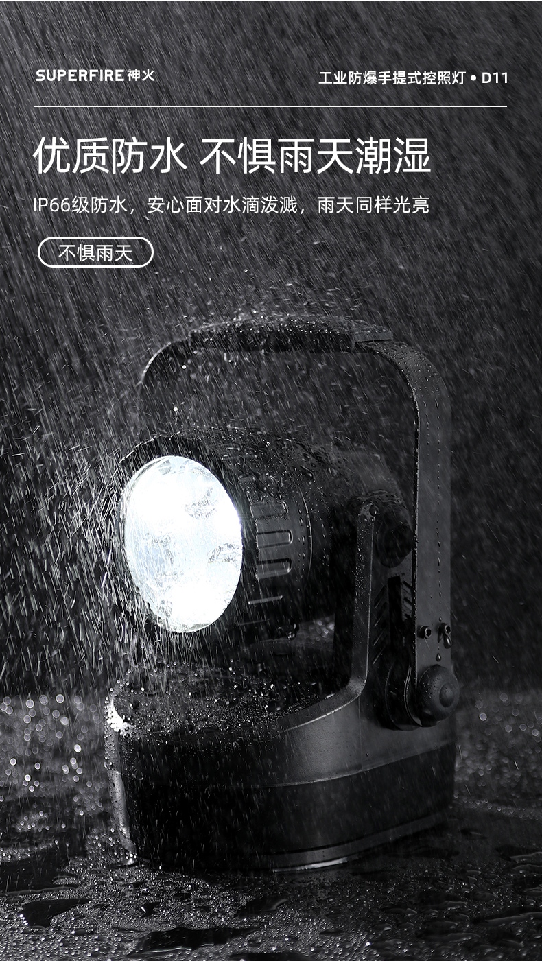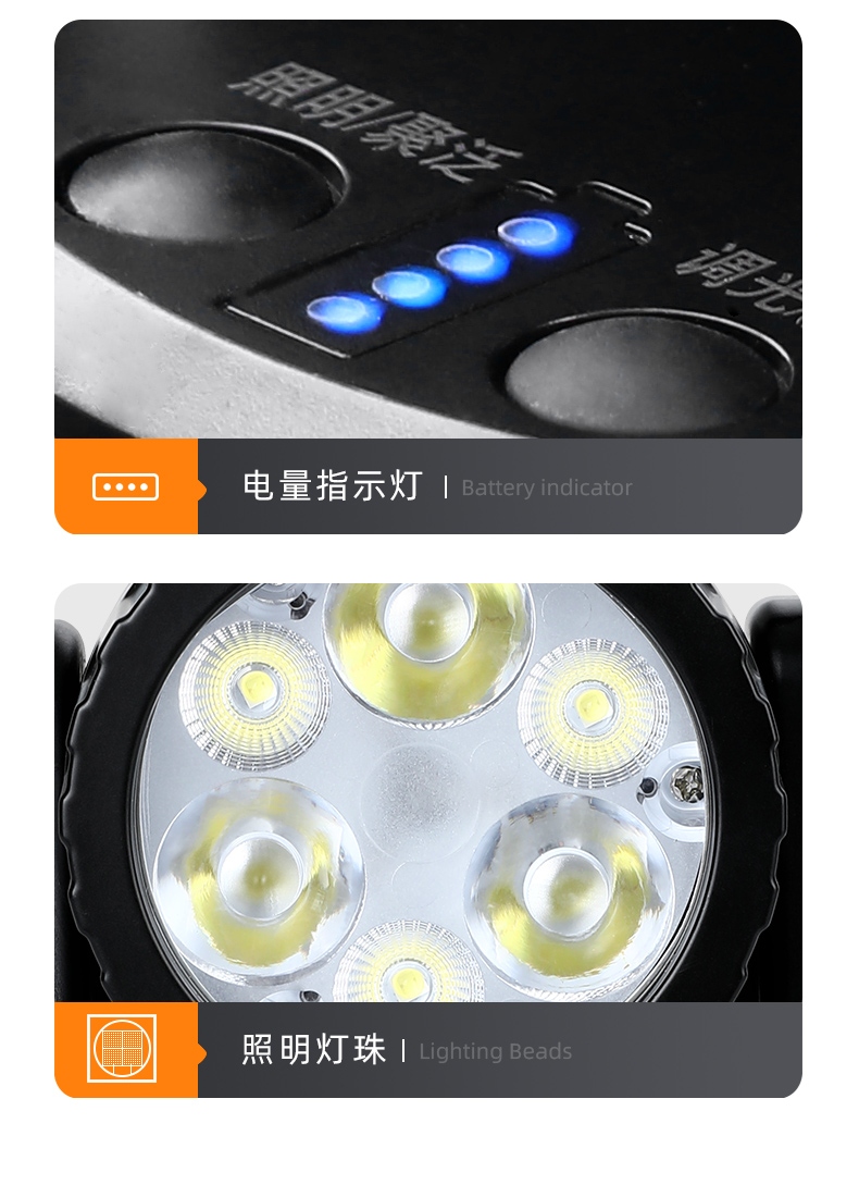 1、多檔調光,可滿足不同使用場景下的照明需求; 2、含提手,握感更舒適。攜帶更簡單; 3、新型高亮遠射燈珠,60W大功率,亮度高,照明效果好。
