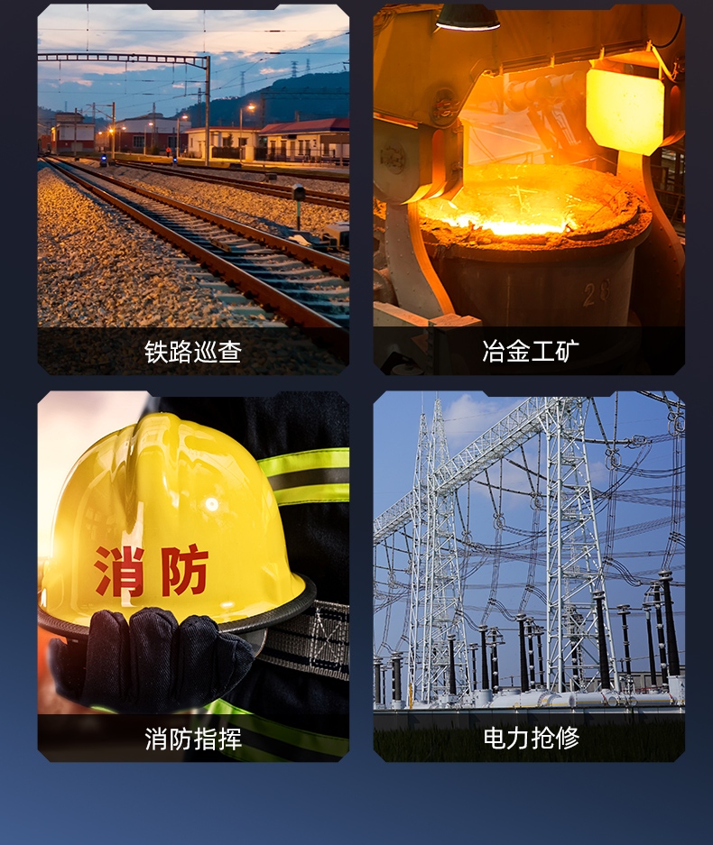 適用場景:鐵路巡查 冶金工礦 消防指揮 電力搶修 地質勘察 石油化工 抗災救援 坑道作業