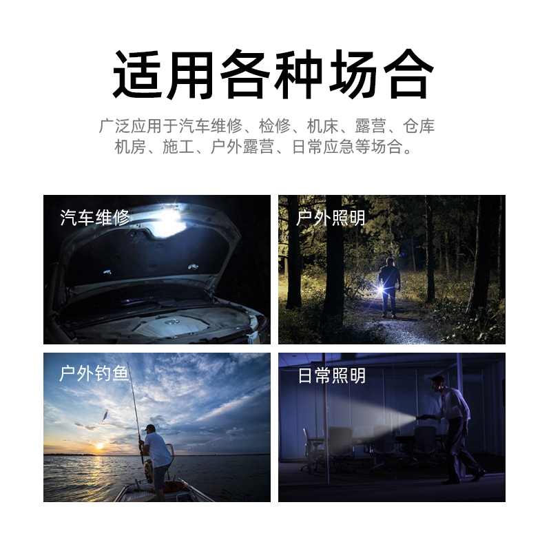 1、多檔調光,可滿足不同使用場景下的照明需求; 2、含提手,握感更舒適。攜帶更簡單; 3、新型高亮遠射燈珠,60W大功率,亮度高,照明效果好。