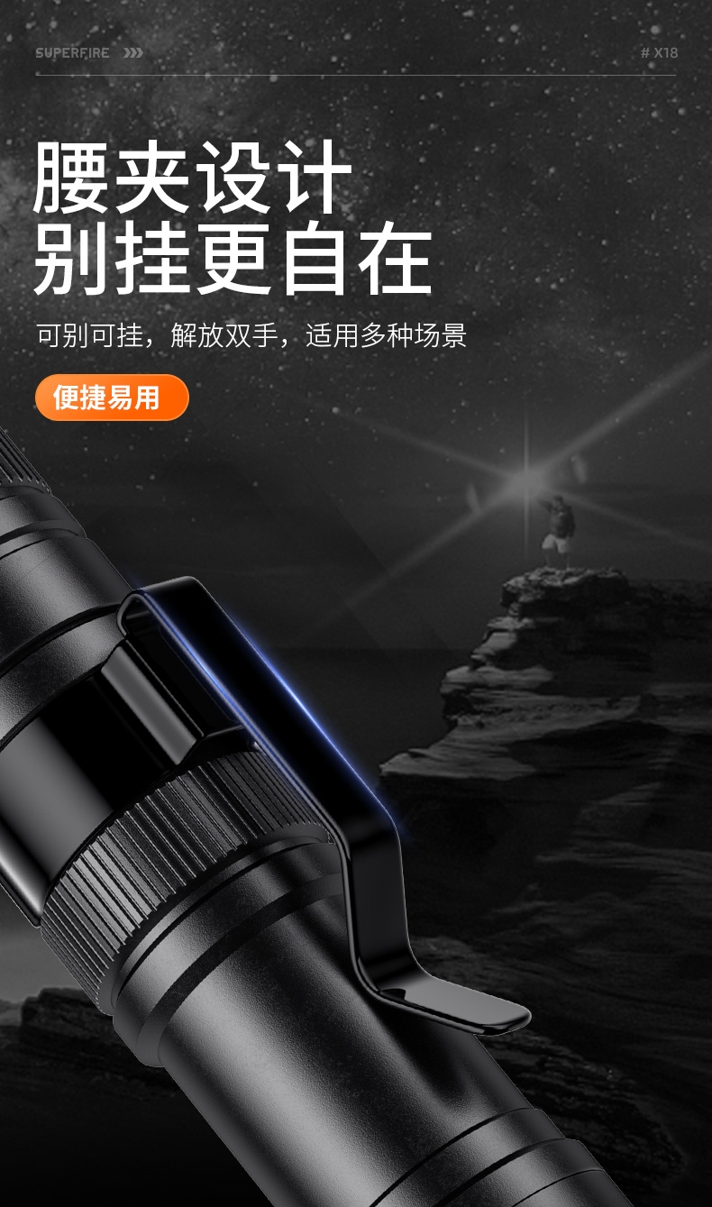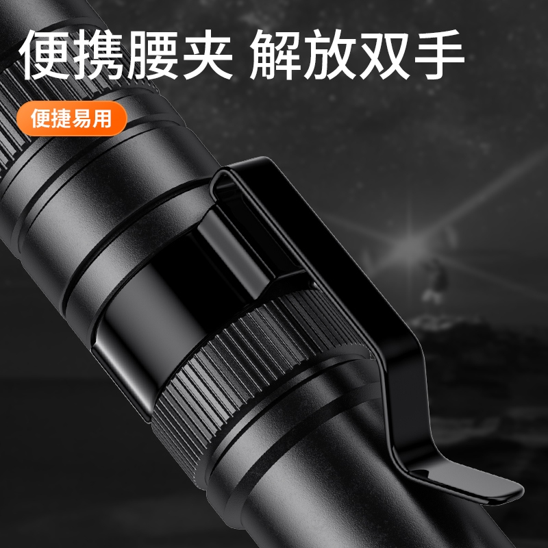 1、千米遠射,射程更遠,光斑更聚焦。 2、進口燈珠,亮度高,照明效果更好。 3、前后雙按鍵,光源一鍵點亮,高亮瞬間開啟。