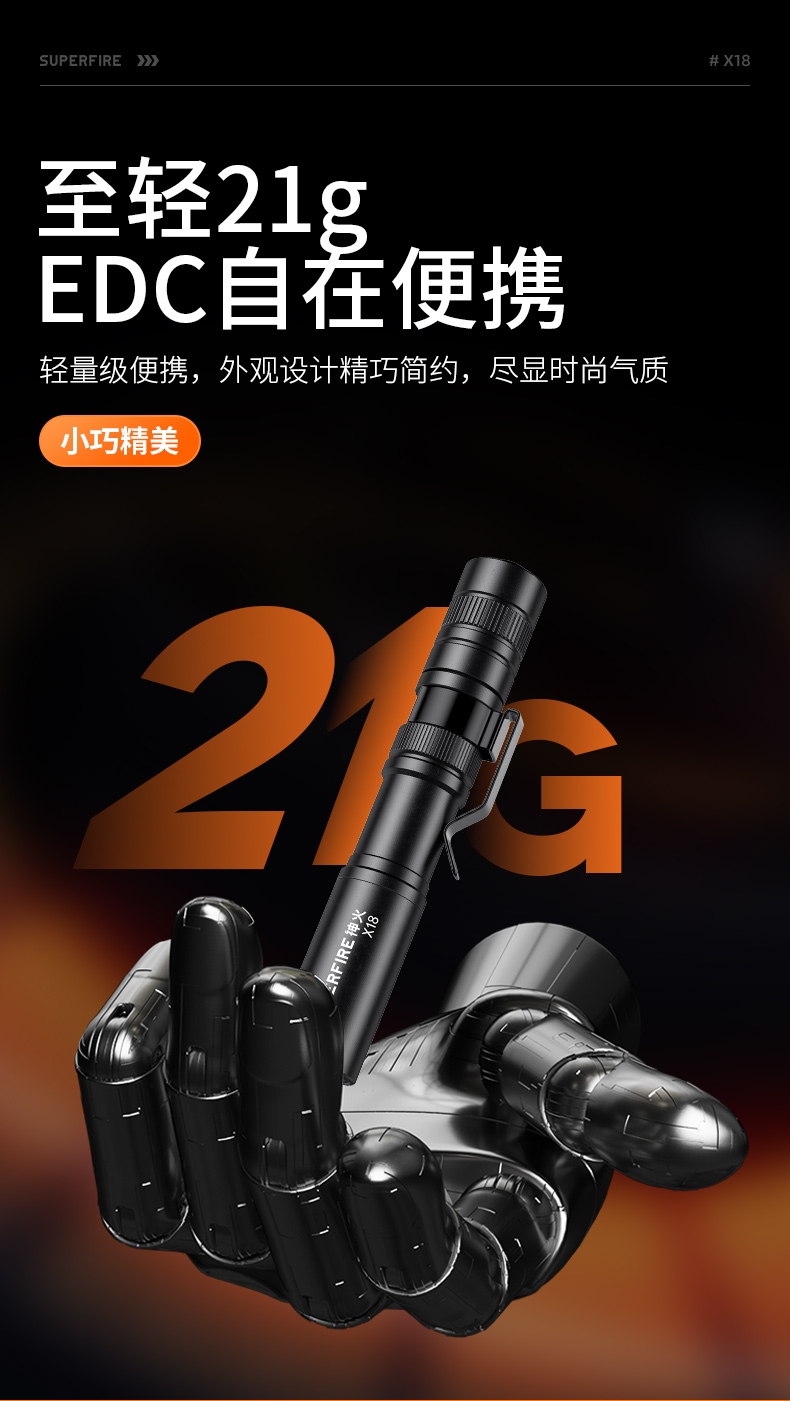 1、小巧便攜,重量只有21G。2、5檔調節,任意切換。3、腰夾設計,可別可掛,解放雙手。4、使用干電池可隨時替換,續航更持久。