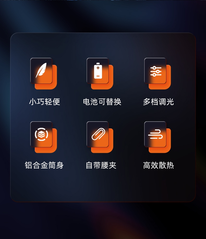 1、六檔調光,可滿足不同使用場景下的照明需求。 2、進口高亮朗明納斯燈珠,照明效果更好。 3、含檔位記憶,任意檔位快捷關機 ,開機恢復關機前檔位。