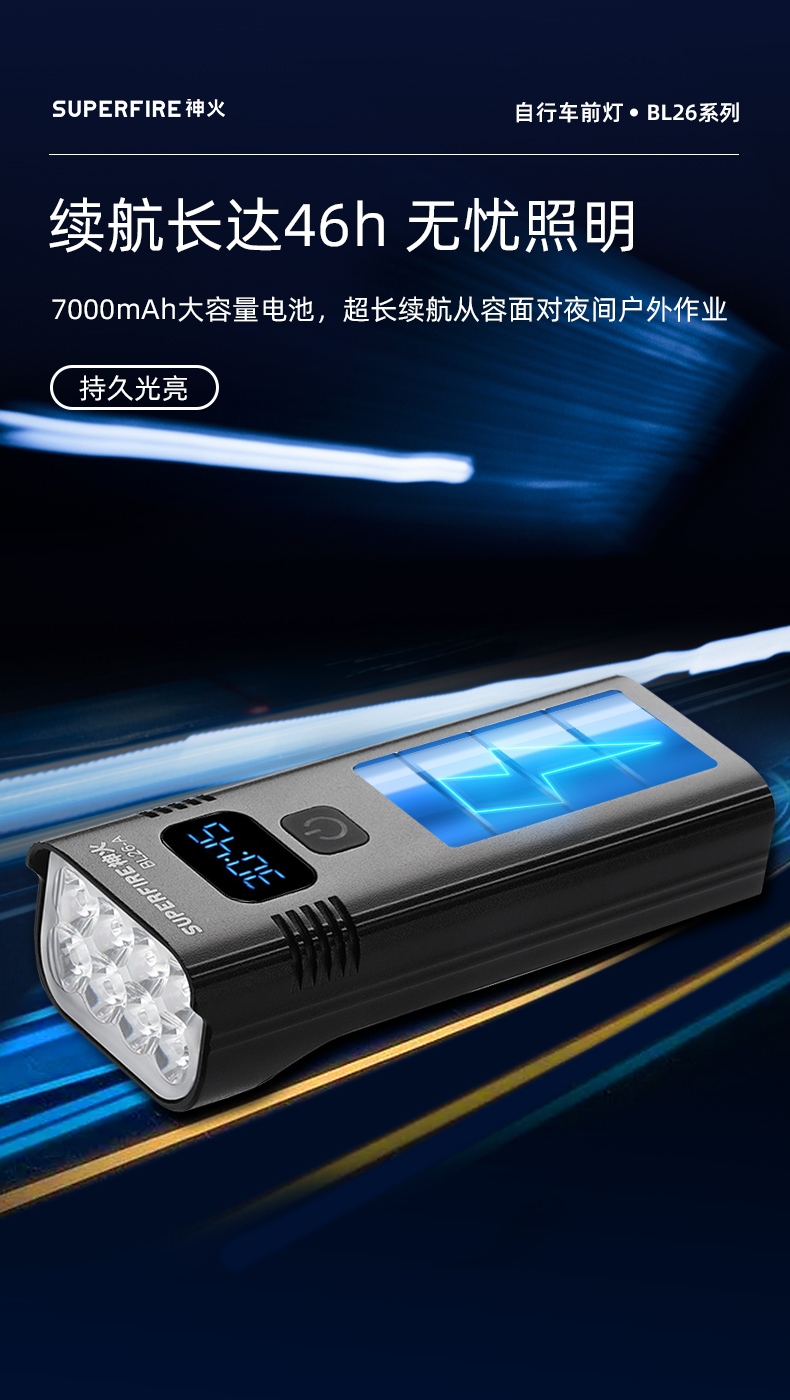 續航長達46h 無憂照明 7000mAh大容量電池,超長續航從容面對夜間戶外作業