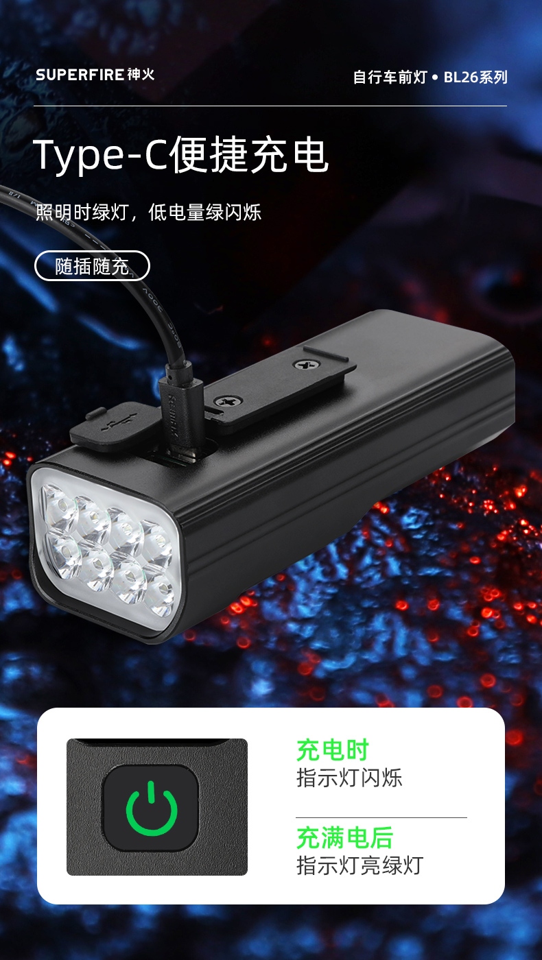 Type-C便捷充電 照明時綠燈,低電量綠閃爍