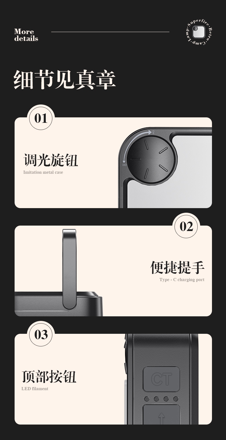 1、六檔調光,可滿足不同使用場景下的照明需求。 2、進口高亮朗明納斯燈珠,照明效果更好。 3、含檔位記憶,任意檔位快捷關機 ,開機恢復關機前檔位。