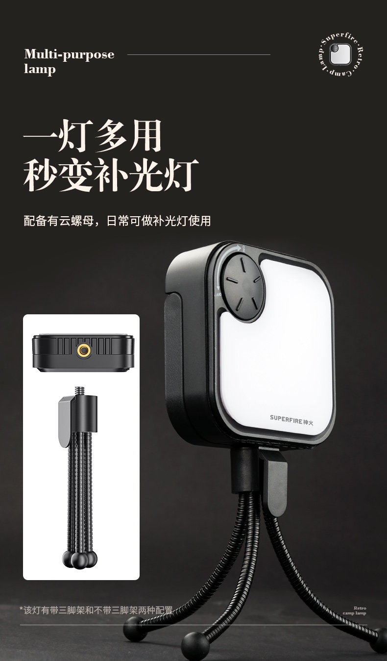 6.帶有云螺母,可做補光燈使用