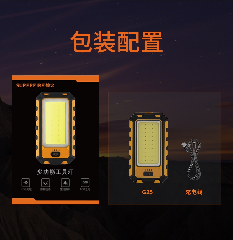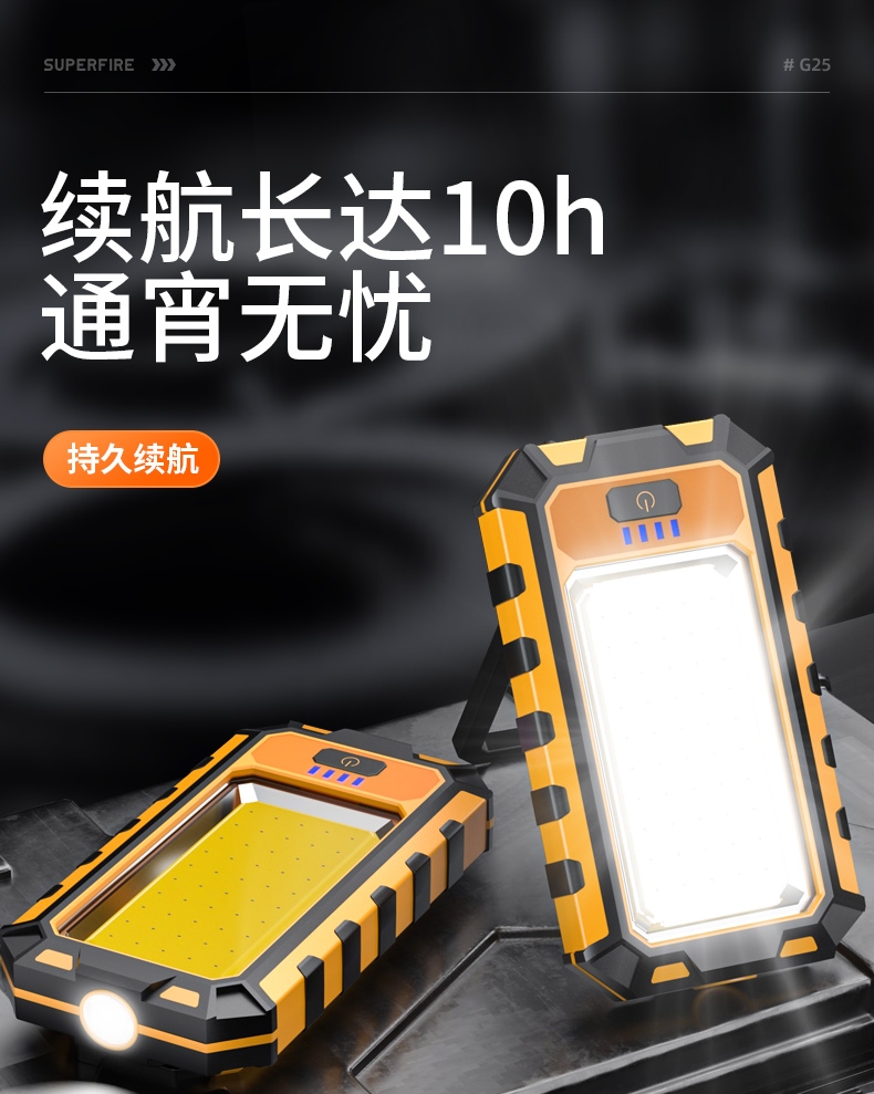 1、多檔調光,可滿足不同使用場景下的照明需求; 2、含提手,握感更舒適。攜帶更簡單; 3、新型高亮遠射燈珠,60W大功率,亮度高,照明效果好。