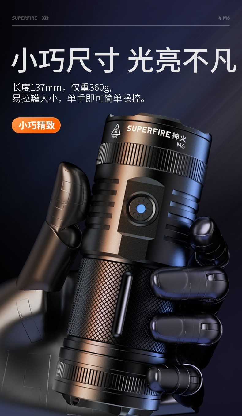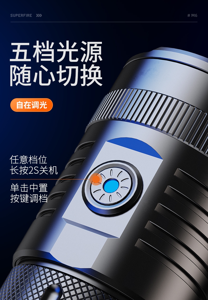 1、六檔調光,可滿足不同使用場景下的照明需求。 2、進口高亮朗明納斯燈珠,照明效果更好。 3、含檔位記憶,任意檔位快捷關機 ,開機恢復關機前檔位。