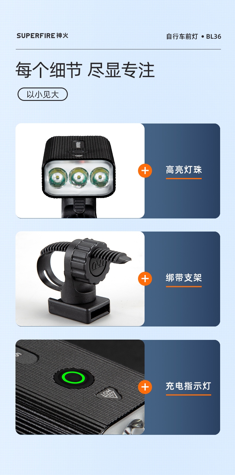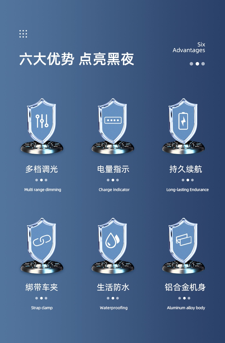 2、綁帶車夾,車頭固定照明,燈車一體,夜騎路上更安全;